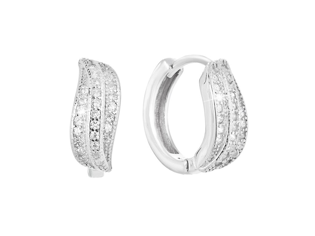 Strieborné náušnice kruhy so zirkónom v bielej farbe 11326.1