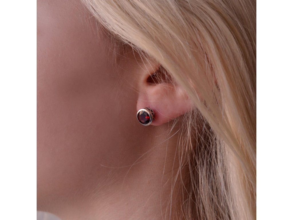 Kôstkové náušnice sú obľúbené, ale pokiaľ navyše majú vystúpený zdobený okraj, stávajú sa z nich luxusné kúsky, ktoré by nemali chýbať vo Vašej šperkovnici. Predstavujeme Vám strieborné náušnice s červeným granátom s priemerom 6,5 mm.