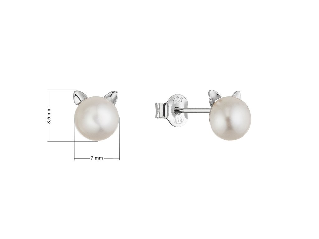 Strieborné náušnice mačičky s riečnou perlou 21117.1