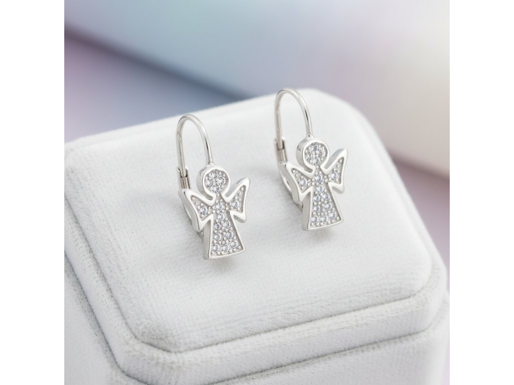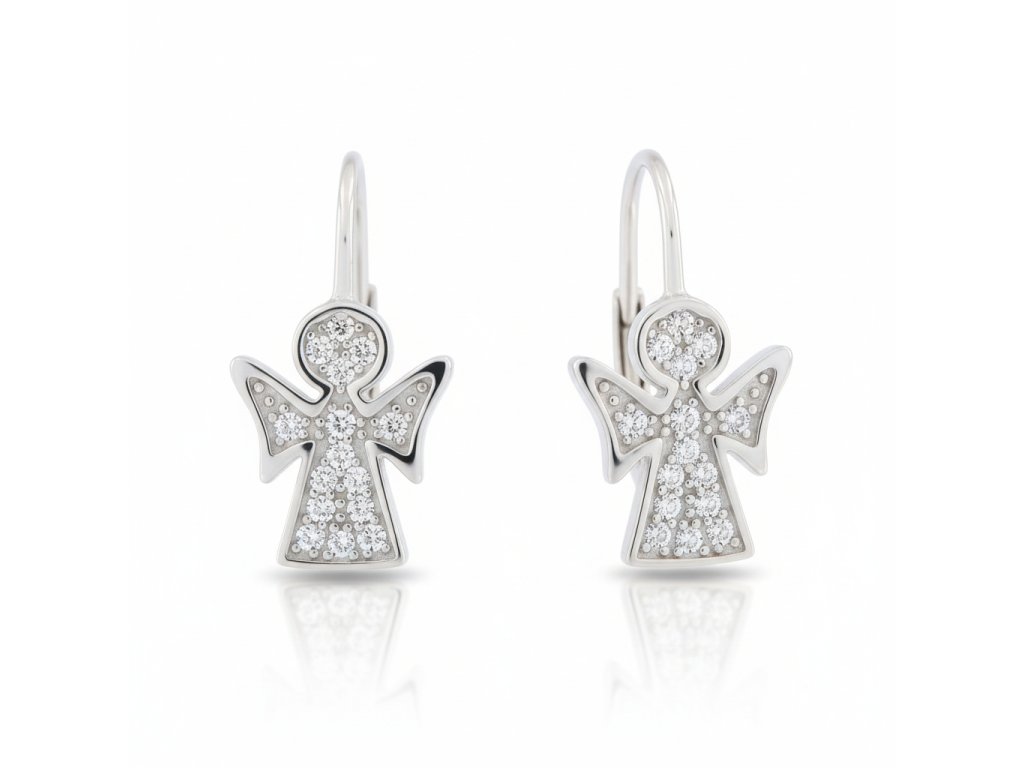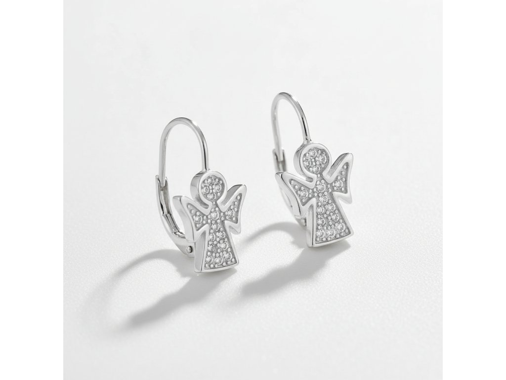 Strieborne náušnice so zirkónmi v tvare anjela EZB111438