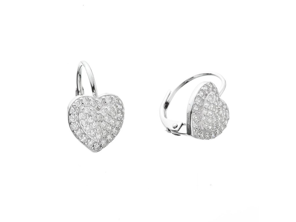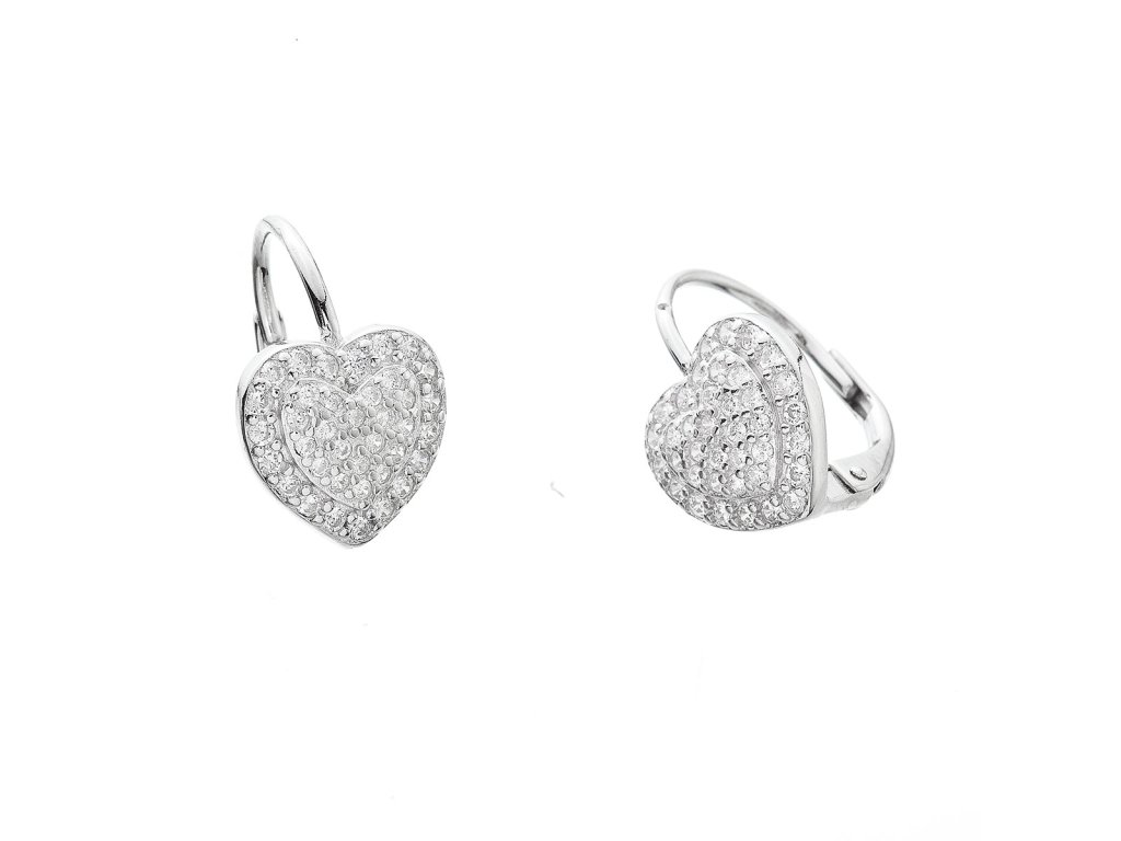 Náušnice v tvare srdiečok - pre romantické duše s vycibreným vkusom. Náušnice 11714.1 vyrobené z rhodiovaného striebra rýdzosti 925/1000 nie sú len krásne, trblietavé. Spoľahlivé zapínanie na klapku zaistí, že vám zostanú verné pri všetkých vašich dobrodružstvách. Každé srdiečko sme vysadili trblietavými zirkónmi, ktoré sa rozžiaria pri najmenšom pohybe - ako by zachytávali všetky šťastné momenty vášho dňa. Náušnice neobsahujú nikel , sú teda vhodné aj pre alergikov.