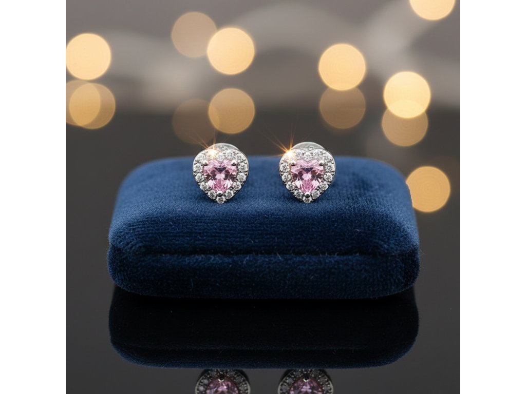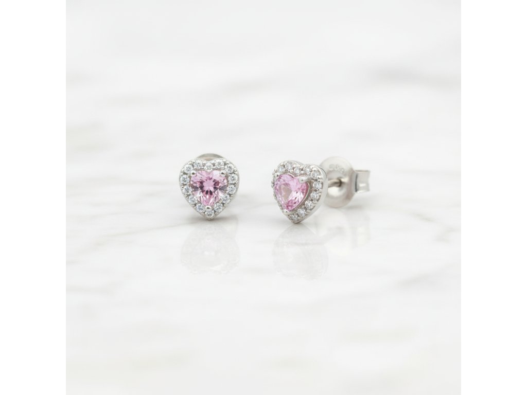 Strieborné náušnice v tvare srdca s ružovým zirkónom EZB115675