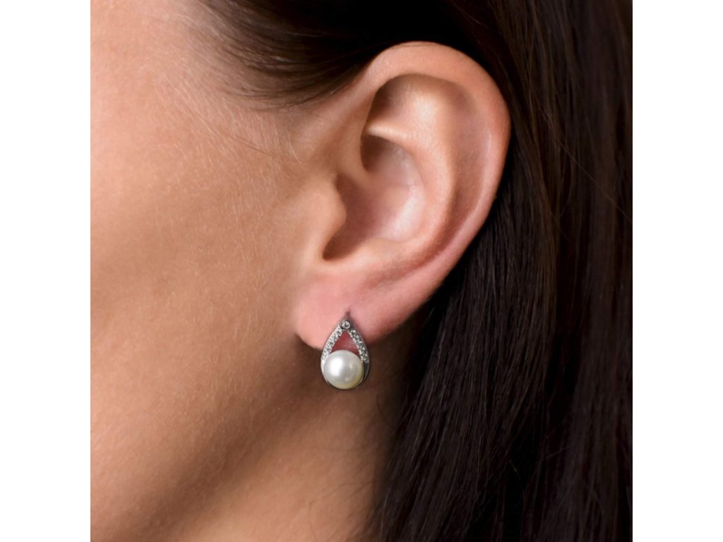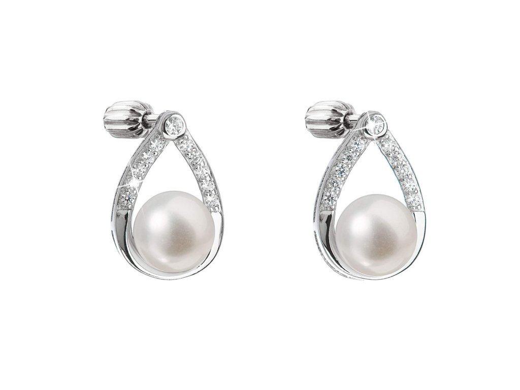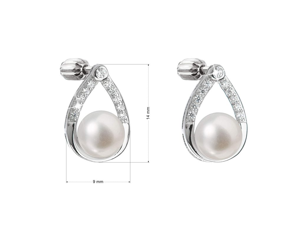 Náušnice sú vyrobené zo striebra o rýdzosti 925/1000 s povrchovou úpravou ródiom a dostanú vás svojím jedinečným spracovaním v originálnom tvare vo forme kvapky. Náušnice sú doplnené o vysoko lesklú bielu riečnu perlu tej najvyššej kvality AAA a taktiež niekoľkými zirkónmi, ktoré šperku požičiavajú nádherný lesk. Šperk neobsahuje žiadny prídavok niklu, a tak je vhodný aj pre osoby s alergiou. Náušnice majú zapínanie na skrutku, ktorá ich spoľahlivo ochráni proti nechcenej strate.