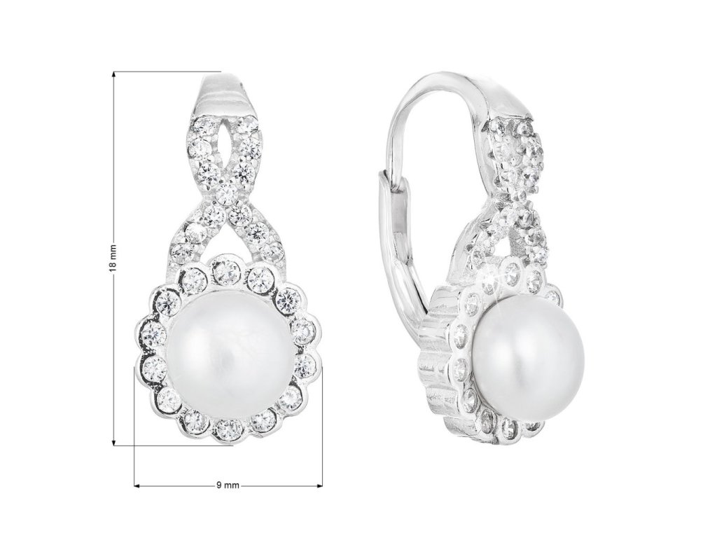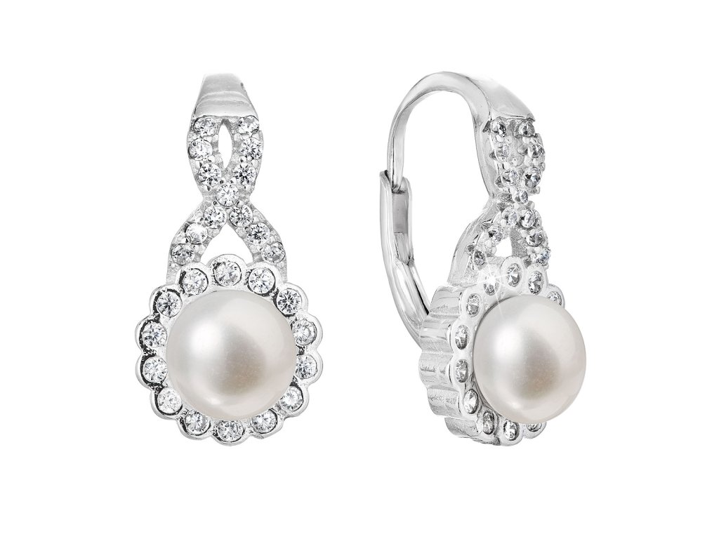 Strieborné náušnice visiace s bielou riečnou perlou 21049.1