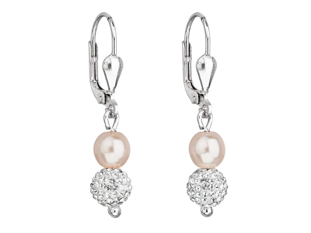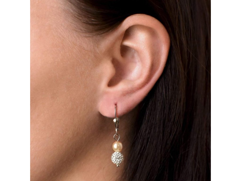 - dlhé visiace náušnice s guľatou perlou a Preciosa krištáľmi