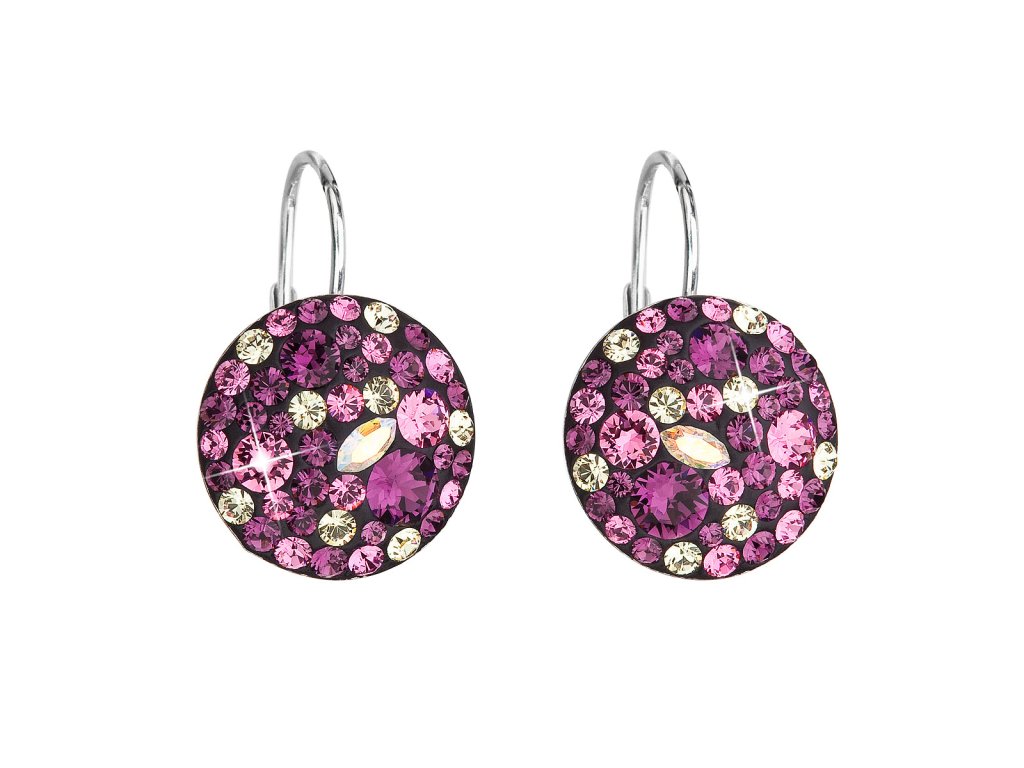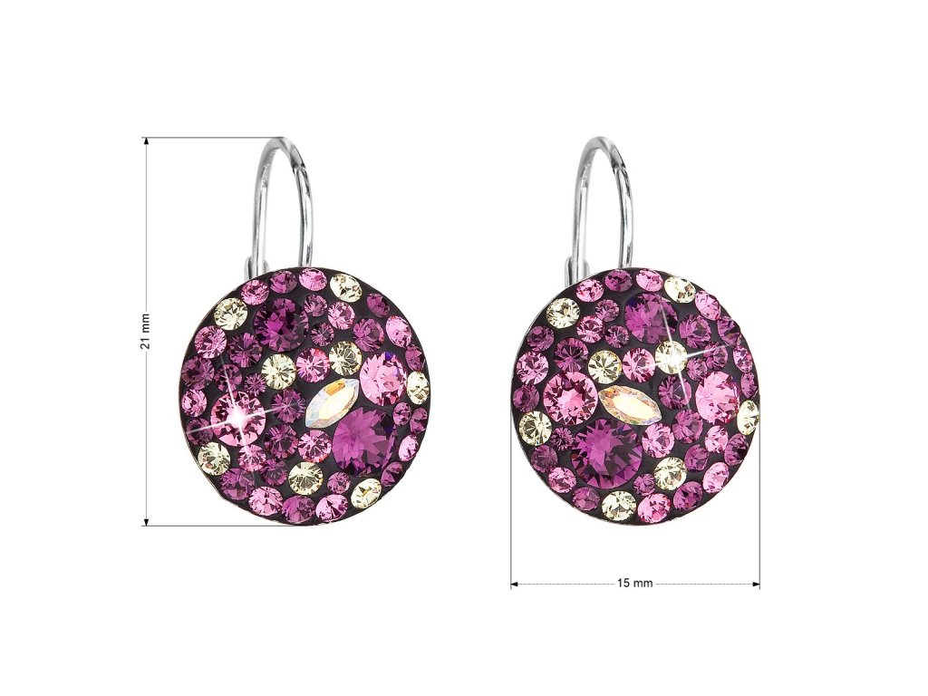 Strieborné náušnice visiace s krištálmi Swarovski fialové okrúhle 31176.3 amethyst