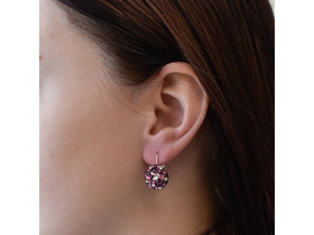 Strieborné okrúhle visiace náušnice 31176.3 amethyst žiaria mnohými krištáľmi Swarovski. Fialová farba krištáľov korešponduje s ródiovaným striebrom 925/1000, z ktorého sú náušnice vytvorené. Ródium udrží šperk vo skvelej forme - bez zažltnutia či sčernenia. Zároveň chráni náušnice 31176.3 amethyst pred poškrabaním. Šperk neobsahuje nikel, je teda vhodným darčekom aj pre alergikov.