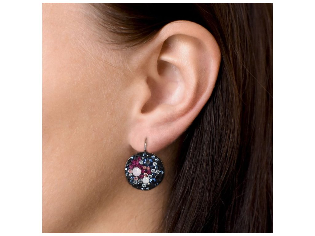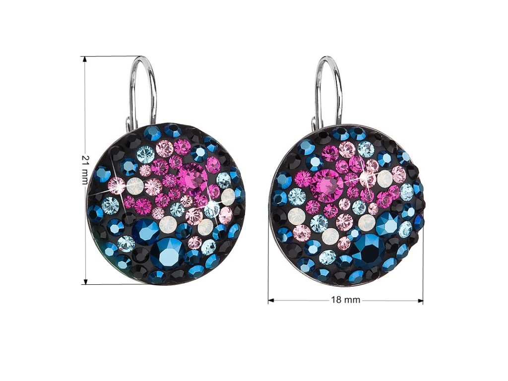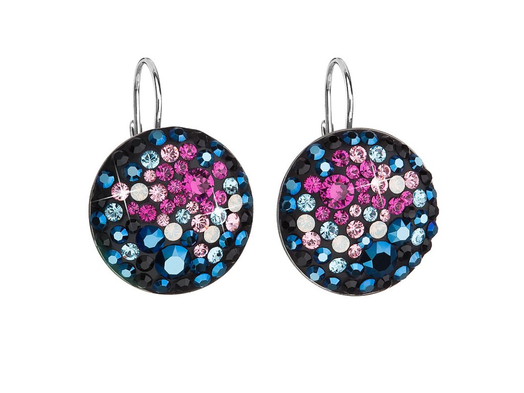 Strieborné náušnice visiace s krištáľmi Swarovski mix farieb okrúhle 31161.4 galaxy