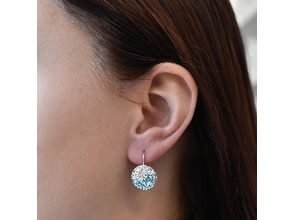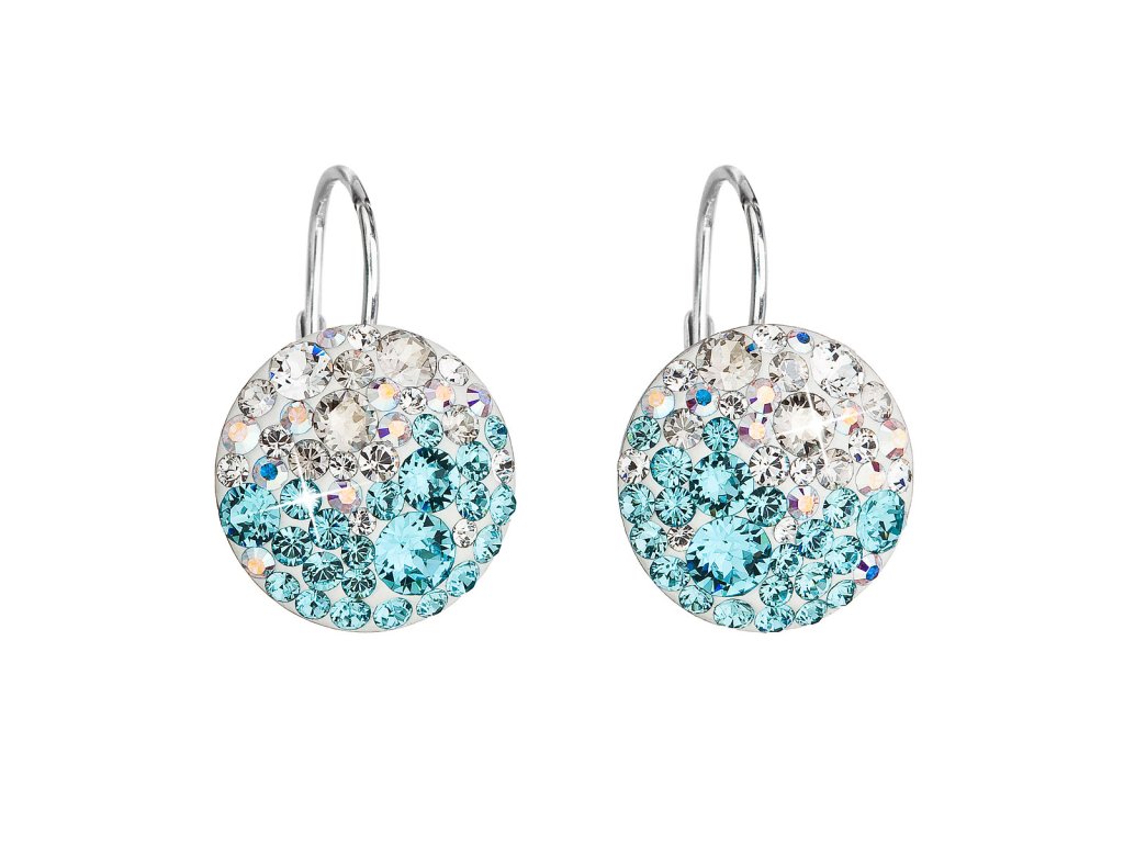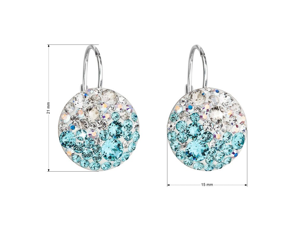 Strieborné náušnice visiace s krištálmi Swarovski modré okrúhle 31176.3 light turquoise