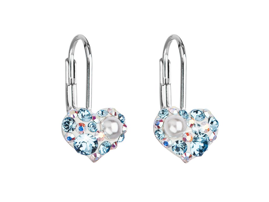 Strieborné náušnice visiace s krištáľmi Swarovski modré srdce 31125.9
