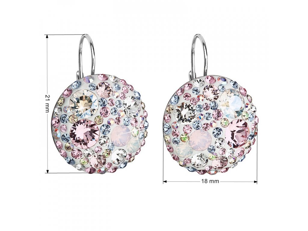 Parametre strieborných visiacich náušníc s krištáľmi Swarovski ružové okrúhle 31161.3