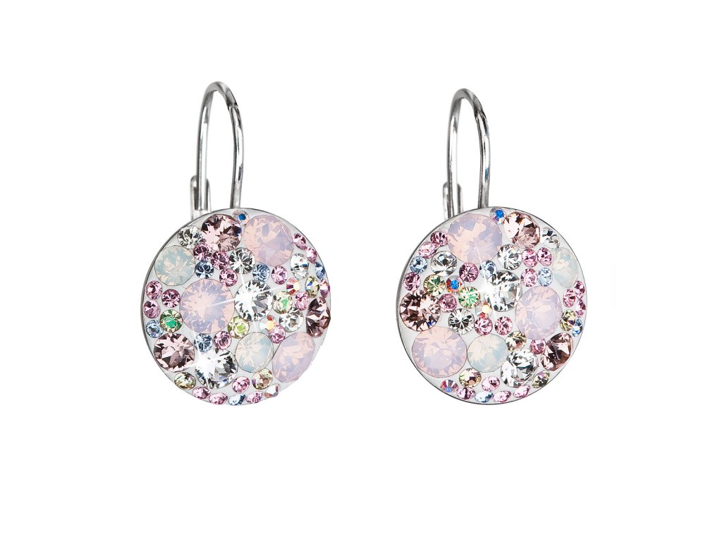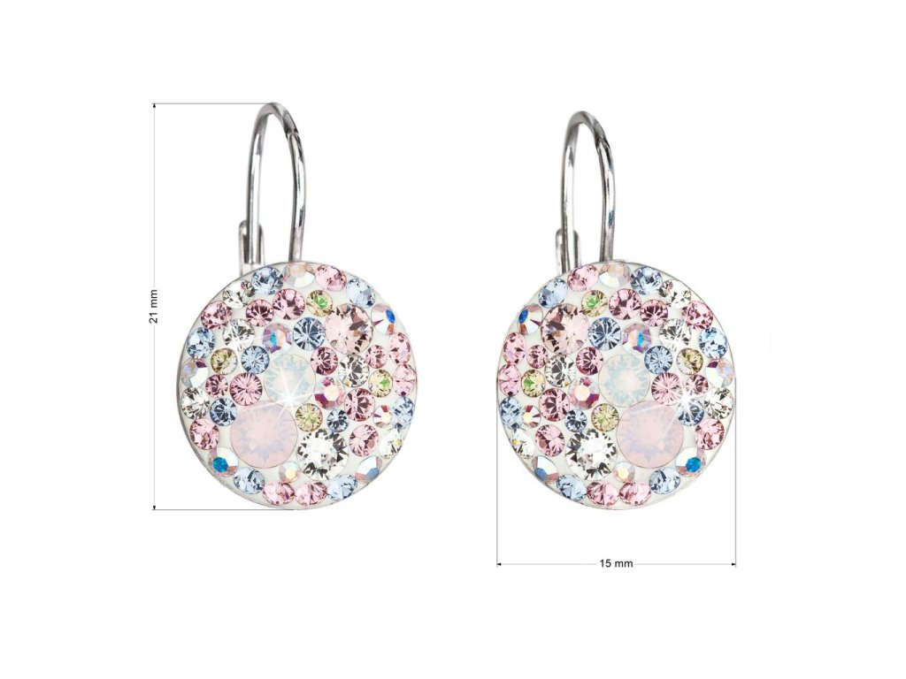 Strieborné náušnice visiace s krištáľmi Swarovski ružové okrúhle 31176.3