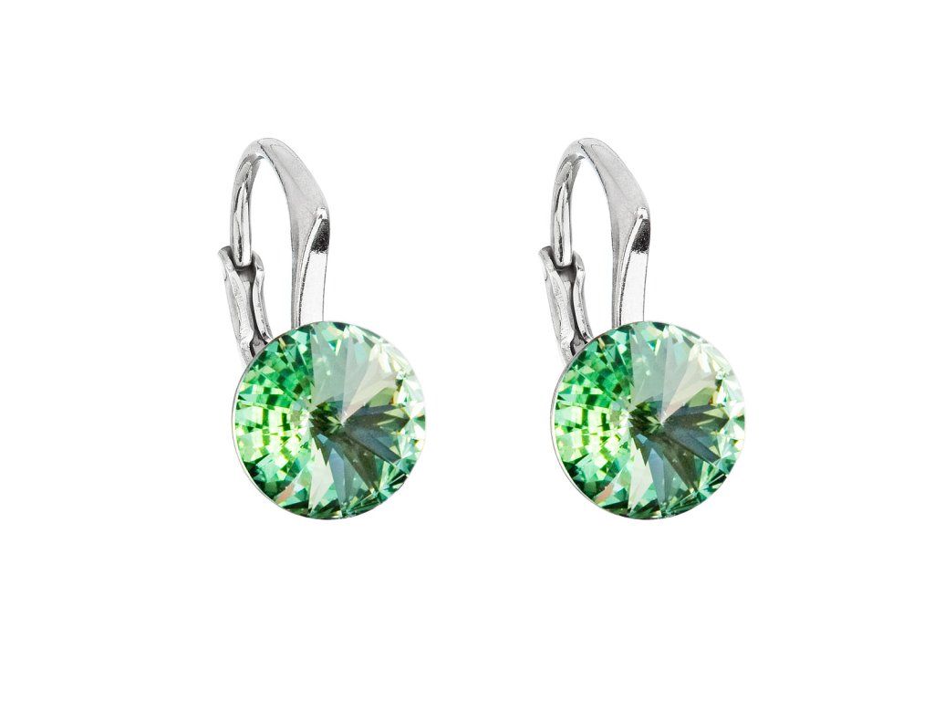 Strieborné náušnice visiace s krištálmi Swarovski zelené okrúhle 31229.3 chrysolite