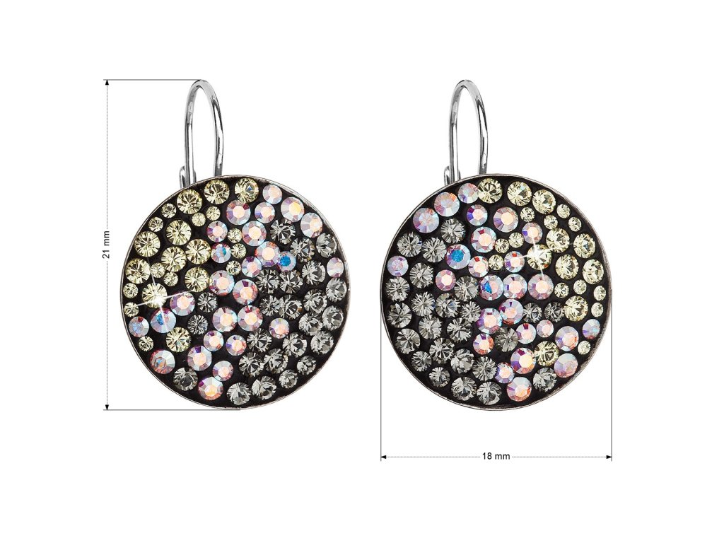 Strieborné okrúhle visiace náušnice 31161.3 moonlight september mnohých krištále Swarovski. Priemer náušnice je 18 mm. Tmavá farba kryštálov je ako mesačná žiara a pekne korešponduje s rhodiovaným striebrom 925/1000, z ktorého sú náušnice vytvorené. Rhodium udrží šperk v skvelej forme - bez zažltnutia aj sčernania. Zároveň chráni náušnice proti poškriabaniu. Šperk neobsahuje nikel, je teda vhodným darčekom aj pre alergikov.