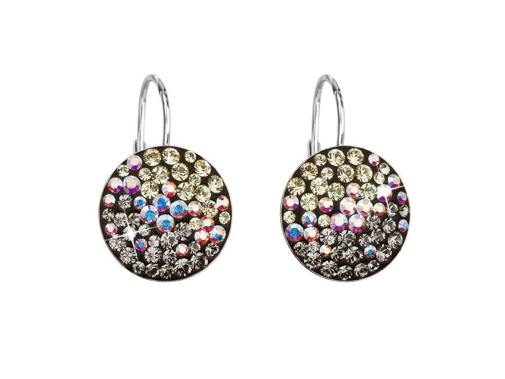Strieborné náušnice visiace s krištáľmi Swarovski mix farieb mesačné okrúhle 31176.3 moonlight