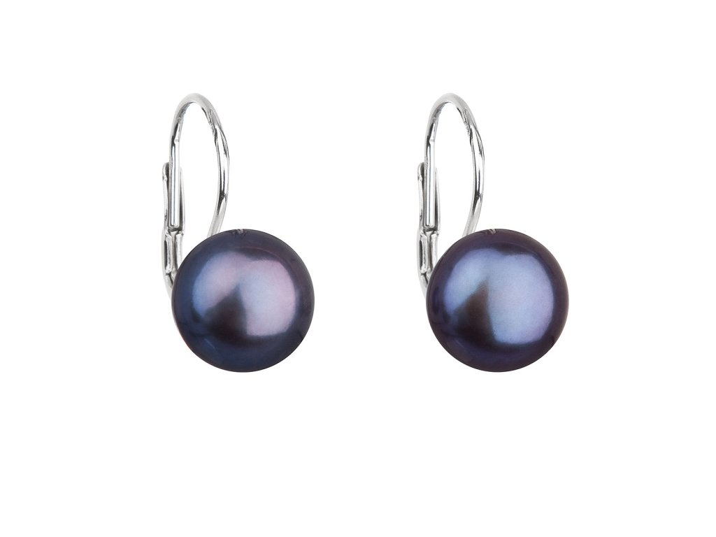 Strieborné náušnice visiace s modrou riečnou perlou 21009.3 peacock