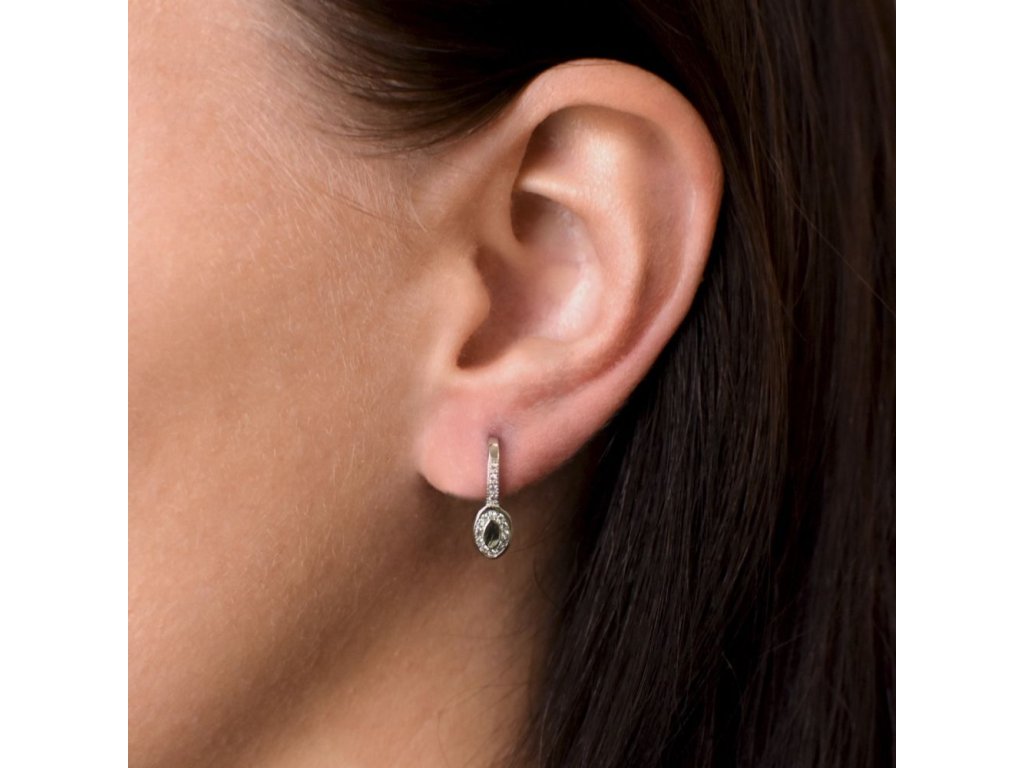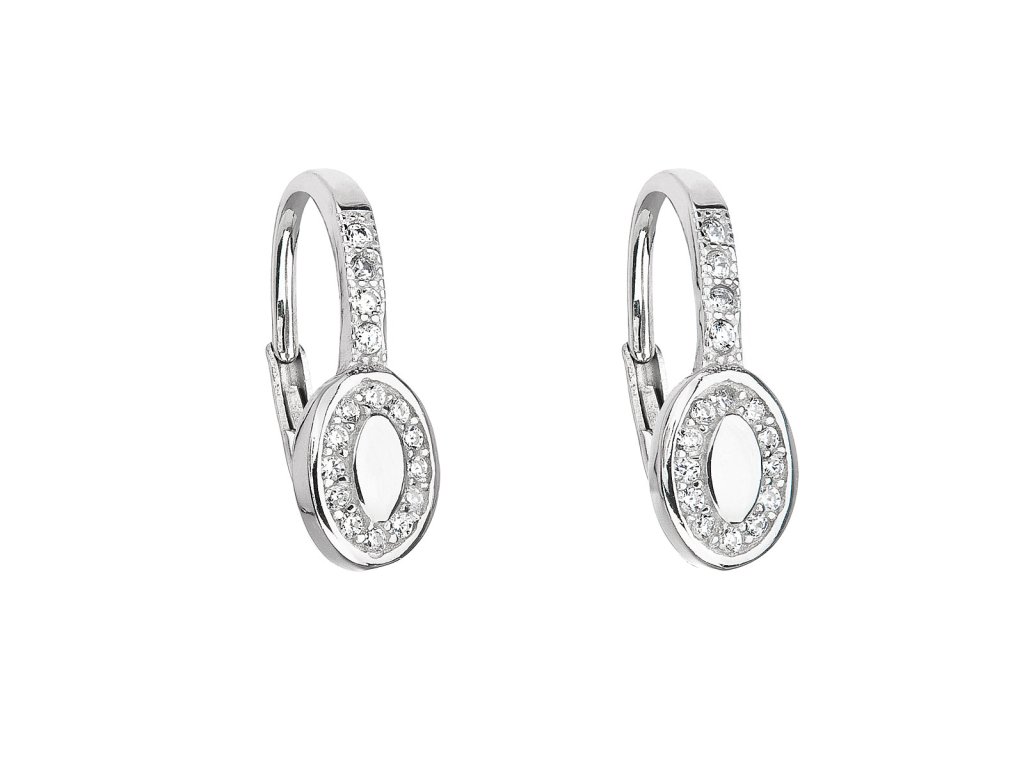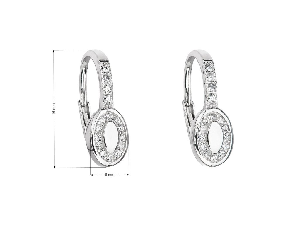 Visiace oválne náušnice 11193.1 sú vyrobené zo striebra rýdzosti 925/1000, ktoré ho povrch je upravený ródiom. Ródium šperk ochráni pred sčernením, zažltnutím a poškrabaním. Náušnice majú dĺžku 16 mm a každá z nich je osadená trblietavými zirkónmi. Náušnice sa zapínajú na klapku. Šperk neobsahuje nikel, a tak sa nemusíte obávať alergickej reakcie.