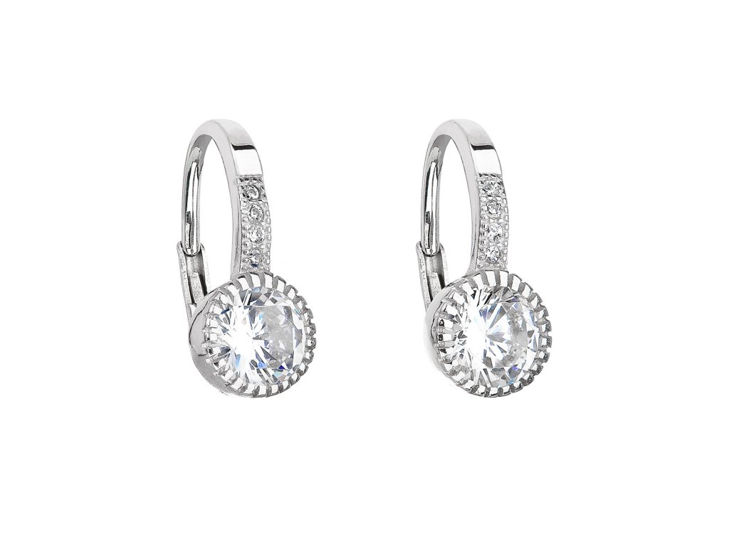 Strieborné náušnice visiace so zirkónom v bielej farbe 11201.1