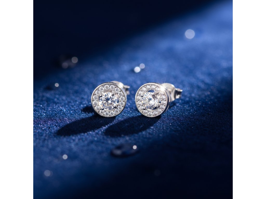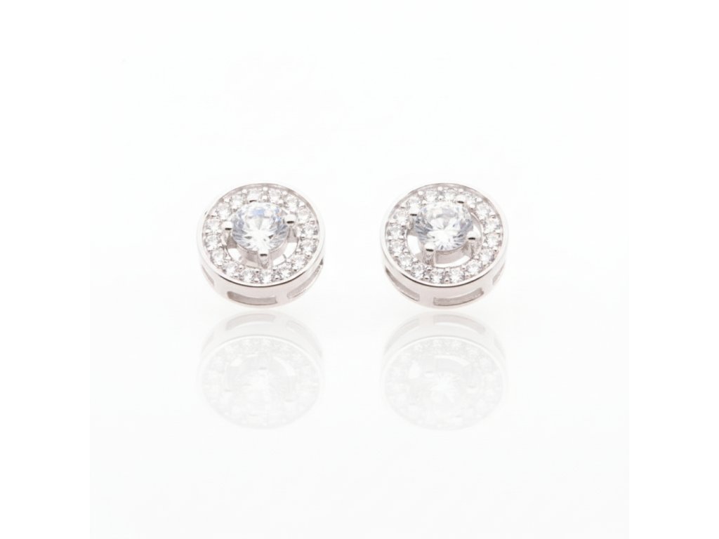 Strieborné okrúhle náušnice s výrazným zirkónom v strede EZA124002