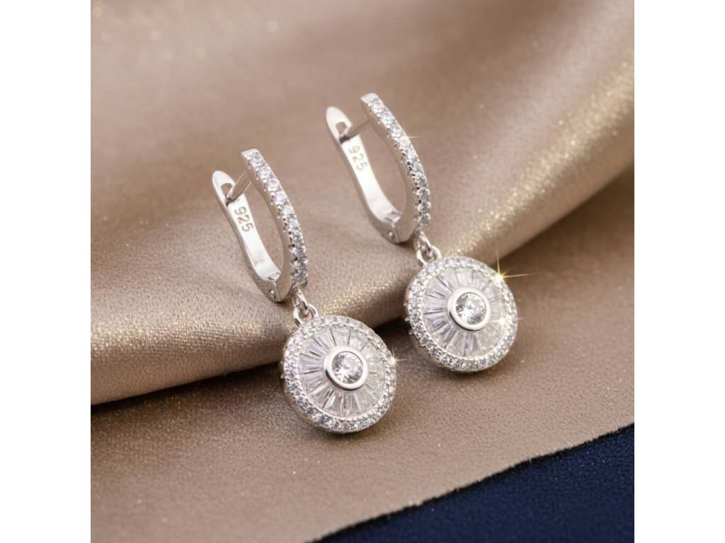 Strieborné visiace náušnice so zirkónmi EZB124666
