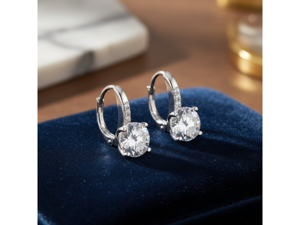 Strieborné visiace náušnice na klapku so zirkónom EZA126046