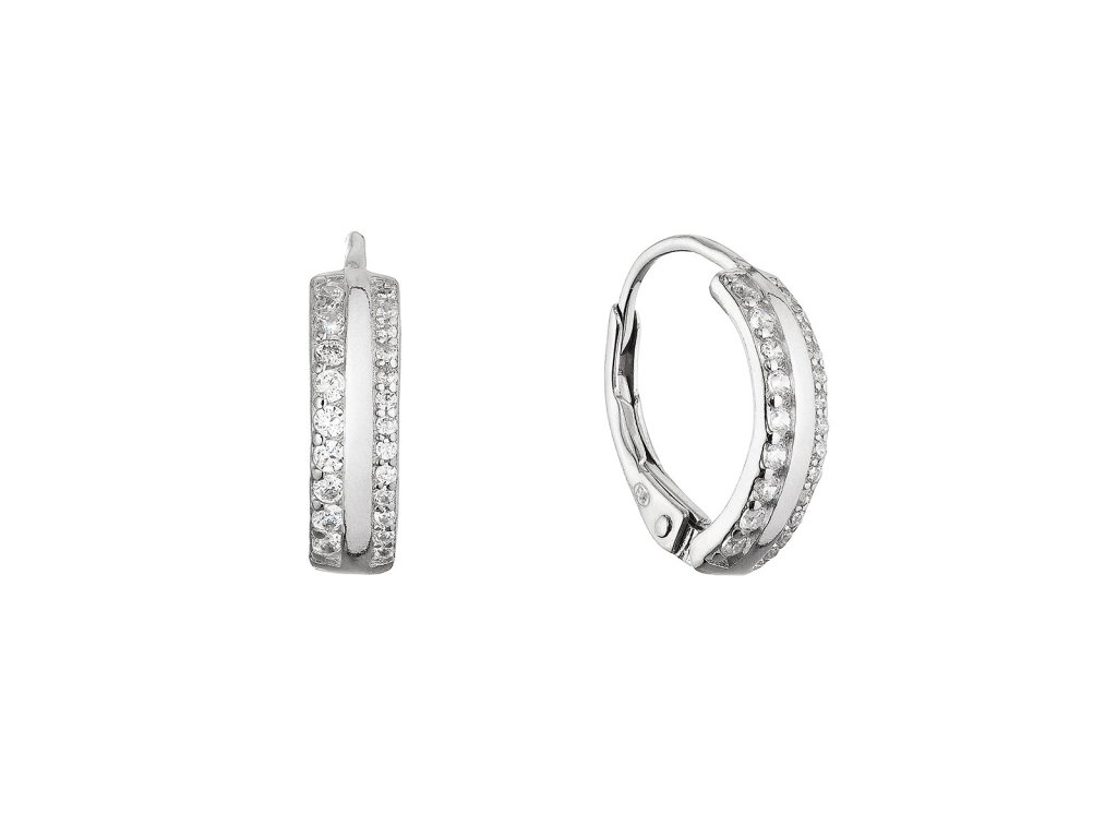 Elegantné visiace náušnice 11663.1 vás okúzlia svojim ladným polkruhovým tvarom a trblietaním čírych zirkónov. Sú vyrobené zo striebra o rýdzosti 925/1000 a povrchovo upravené ródiom, ktoré šperk chráni proti sčernaniu, zažltnutiu i drobnému poškriabaniu. Precízne dekorovanie zirkónmi podčiarkuje sofistikovaný vzhľad náušníc, ktoré jemne kopírujú líniu ucha a krásne sa lesknú pri každom pohybe. Praktické zapínanie na klapku zaisťuje pohodlné a bezpečné nosenie.