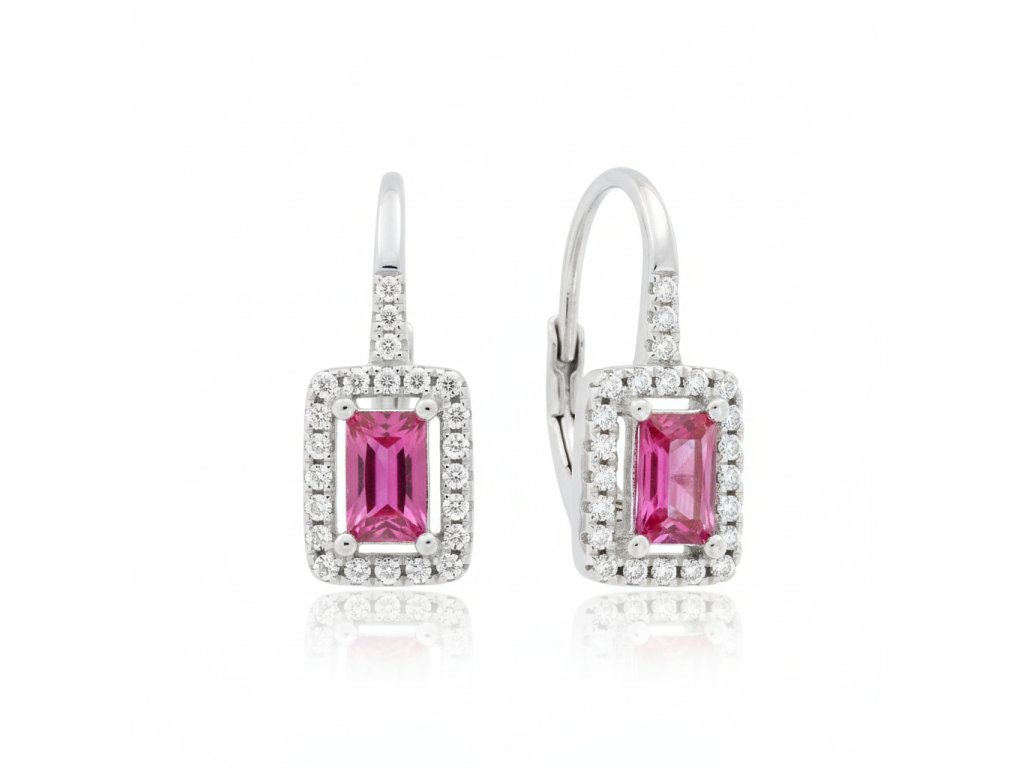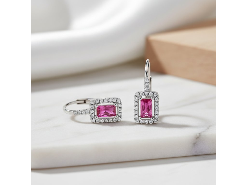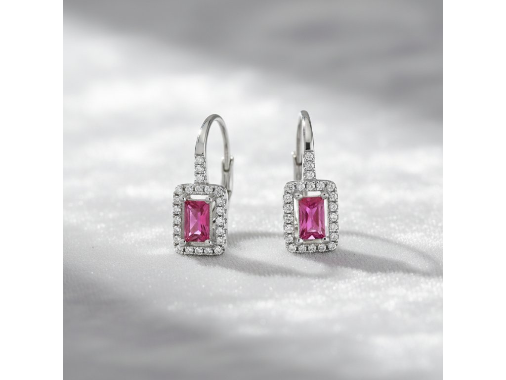 Strieborné visiace náušnice s fuksiovým obdĺžnikovým zirkónom EZB108466