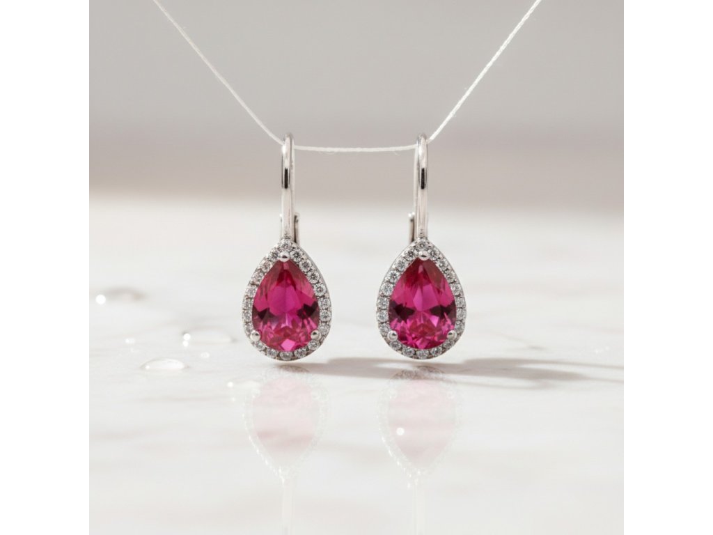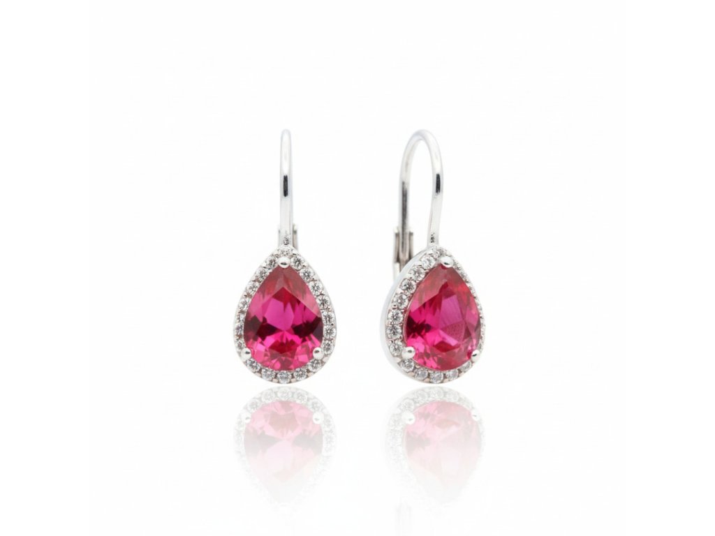 Strieborné visiace náušnice s fuksiovým zirkónom EZB118458