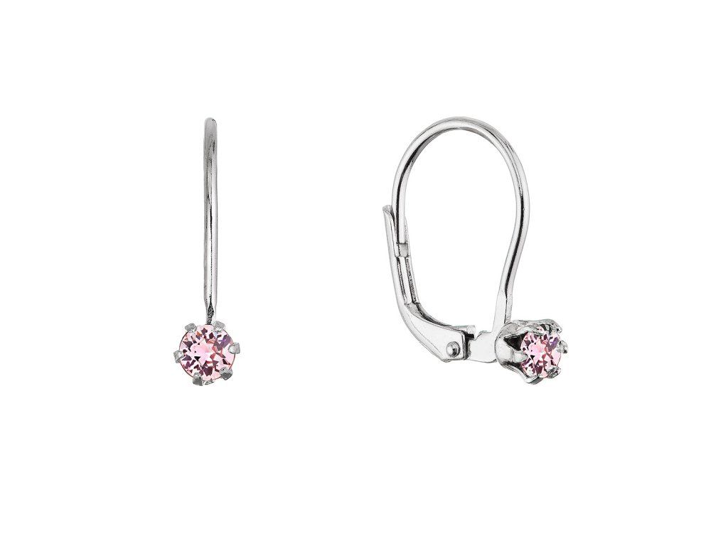 Strieborné visiace náušnice s Preciosa krištáľom 31322.3 lt. rose