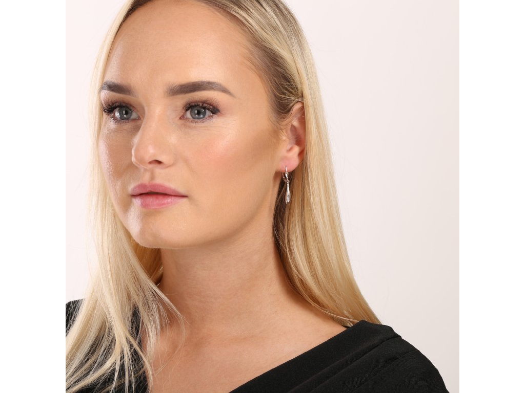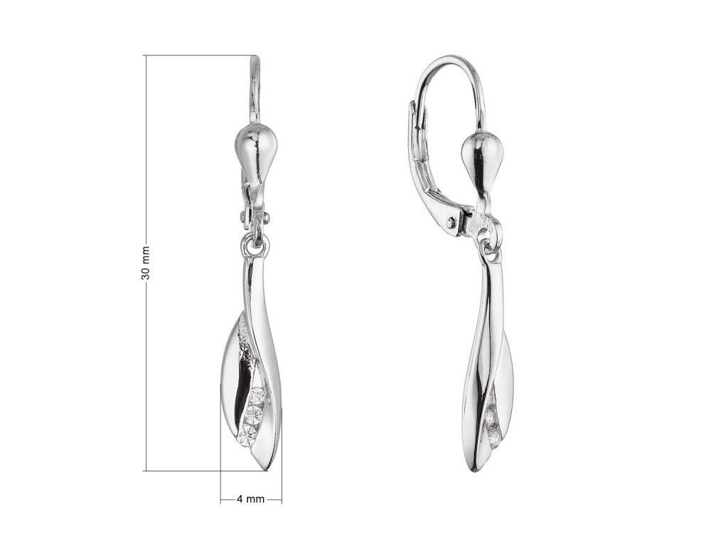 Strieborné visiace náušnice 11611.1 z kvalitného striebra o rýdzosti 925/1000 s ródiovou úpravou zaujmú svojim elegantným a nevšedným dizajnom v tvare slzy. Náušnice sú rozdelené do troch častí – najdlhšia hladká časť tvorí hornú líniu slzy a plynule prechádza do stredovej časti, ktorú zdobia tri jemne vsadené číre kamienky dodávajúce šperku decentný lesk. Tretia, spodná časť je opäť hladká, ale kratšia, čo vytvára harmonický vizuálny kontrast a dodáva náušniciam ľahkosť.