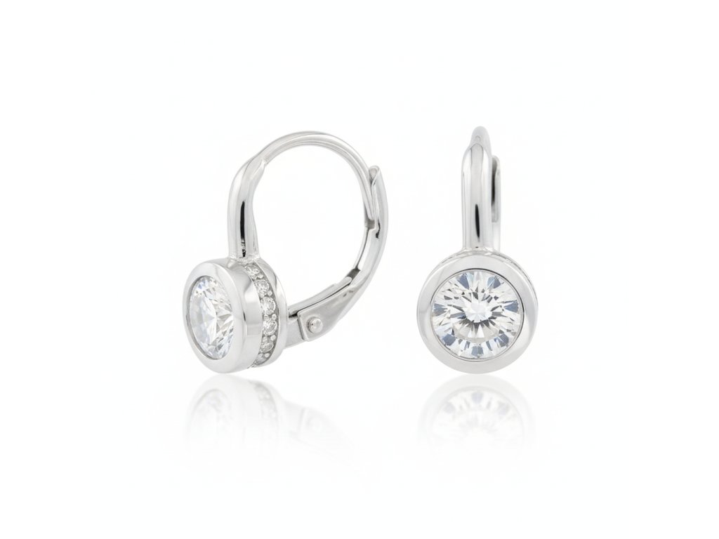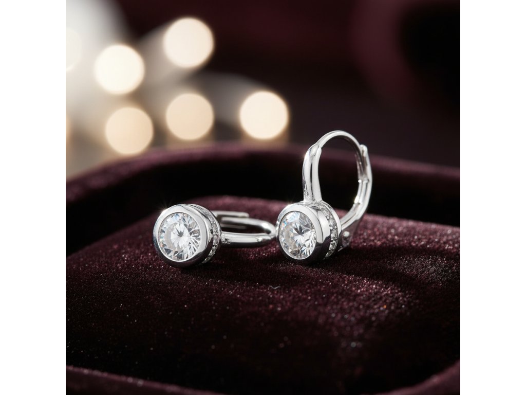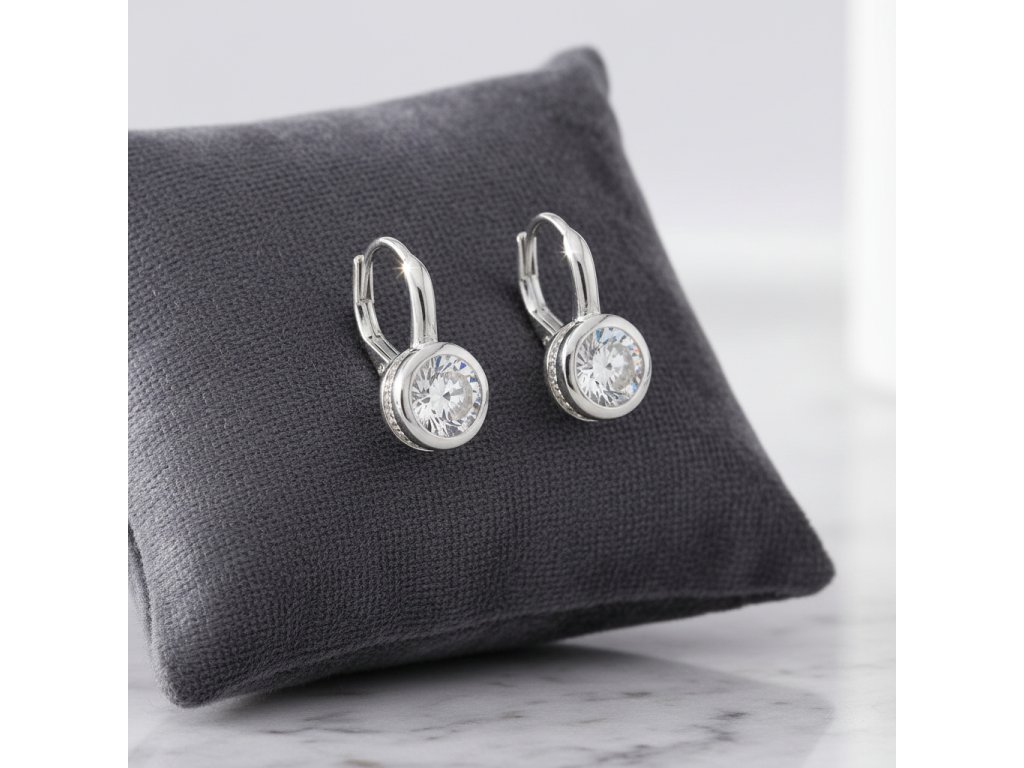 Strieborné visiace náušnice so zirkónom v strede EZA106554