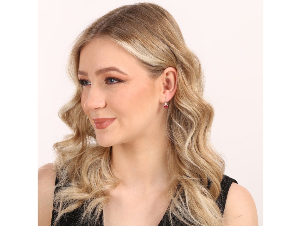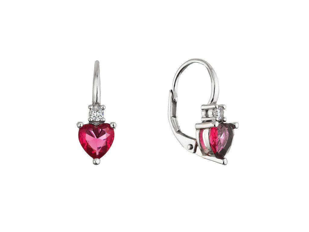Strieborné visiace náušnice 11650.3 z kvalitného striebra 925/1000 s ródiovou úpravou zaujmú svojim romantickým a elegantným dizajnom v tvare srdca. Dominantou každej náušnice je výrazný zirkón v sýto červenej farbe ruby, zasadený do jemnej kovovej konštrukcie, ktorá je efektne rozpolená a dodáva šperku ľahkosť a moderný výraz.