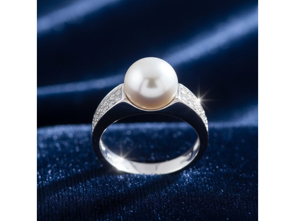 Strieborný dámsky prsteň s perlou a zirkónmi po bokoch RPB37863