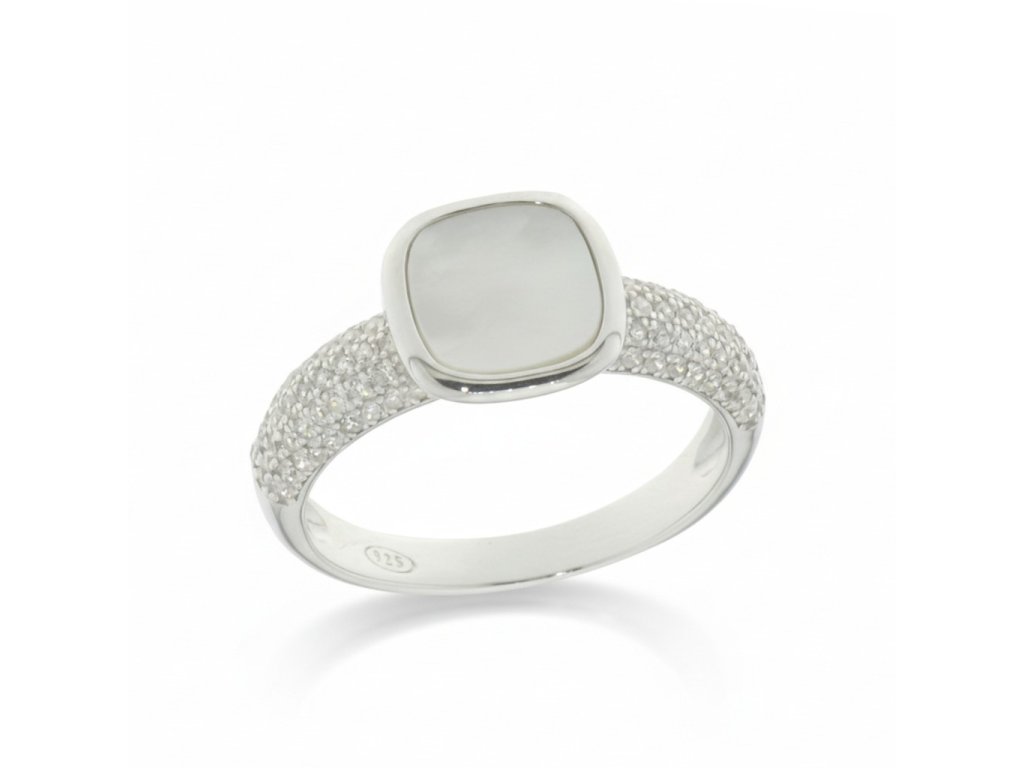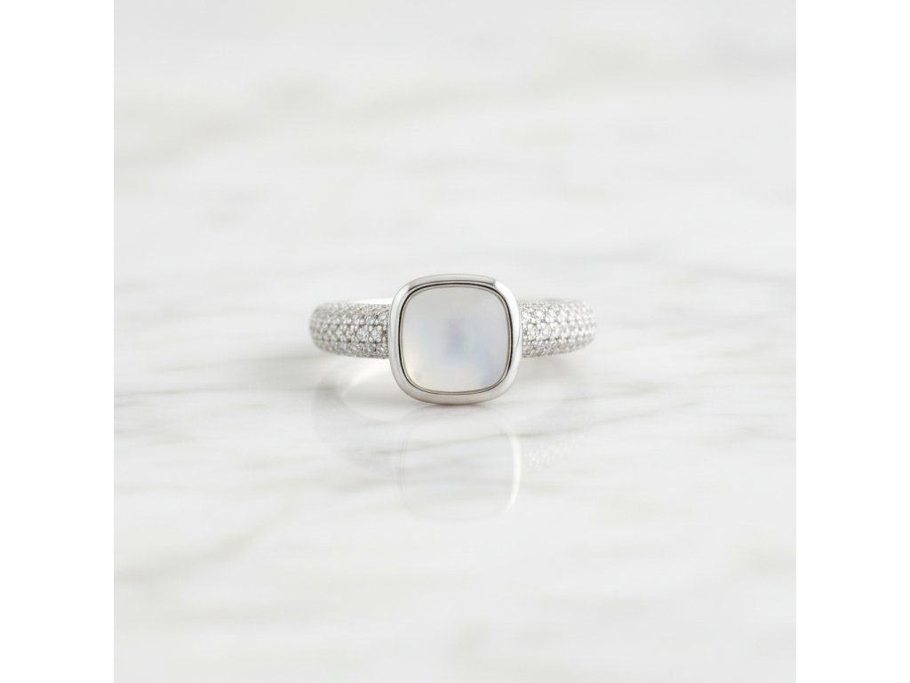 Strieborný dámsky prsteň - štvorcový tvar s perleťou a zirkónmi RPB89219