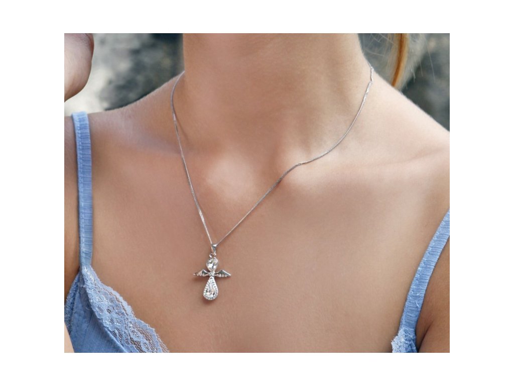 Strieborný náhrdelník anjel so Swarovski kryštálmi biely 32072.1