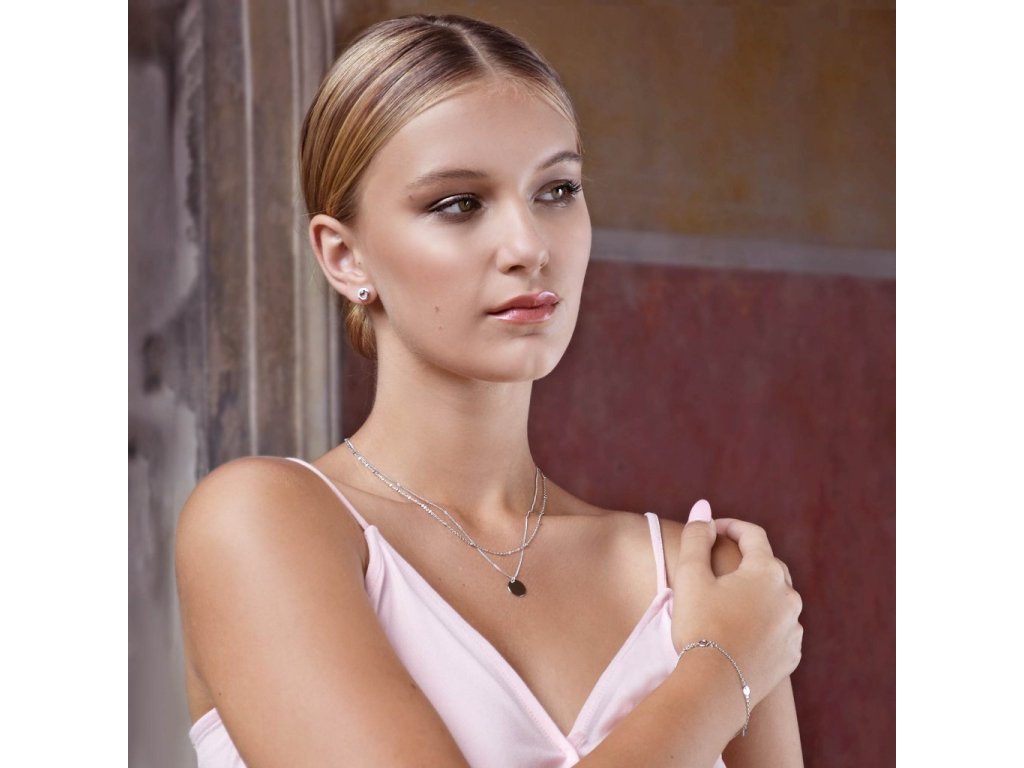 Nový moderný a elegantný štýl sú dvojité náhrdelníky a náramky. Choďte s módou s novým strieborným náhrdelníkom 62002, ktorý tvorí dve retiazky, jedna s jemnými guličkami po obvode a druhá s modernou leštenou striebornou placičkou. Placička má priemer 12 mm a krásne sa leskne.