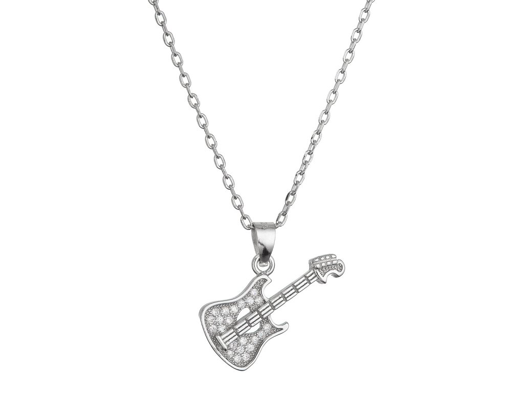 Strieborný náhrdelník gitara so zirkónmi 12126.1