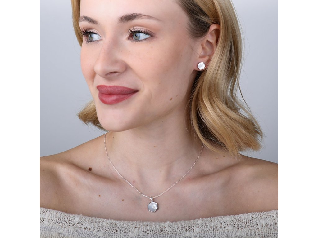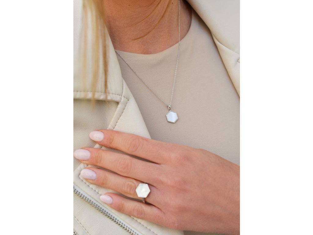 Strieborný náhrdelník hexagón s bielou perleťou 12149.1
