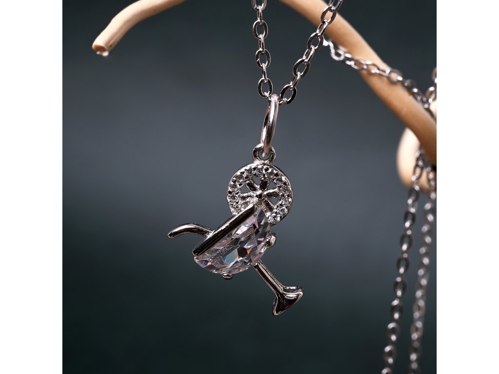 Strieborný náhrdelník koktail so slamkou 12177.1