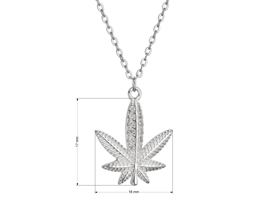 Náhrdelník so zirkónmi zdobeným konopným listom, ktorý je symbolom sily, odvahy a prírodnej krásy.
