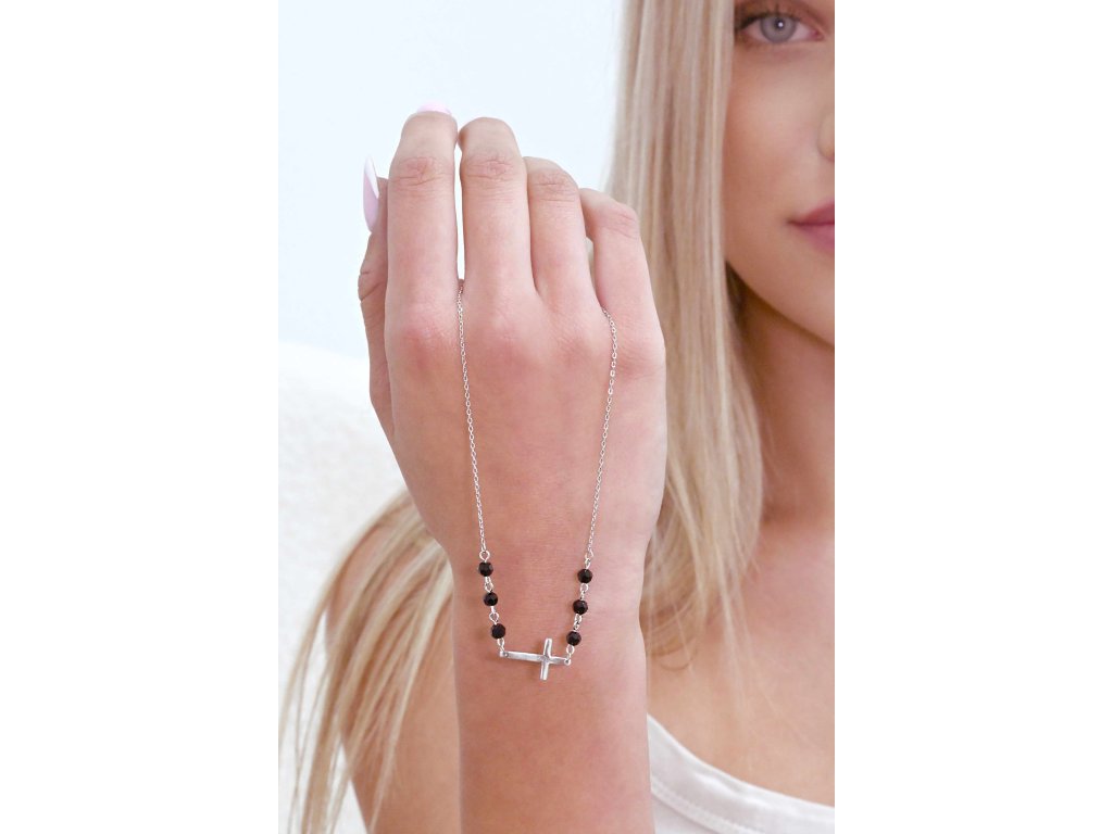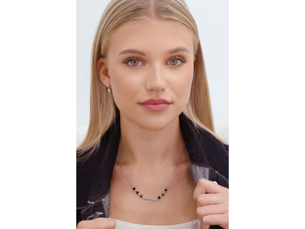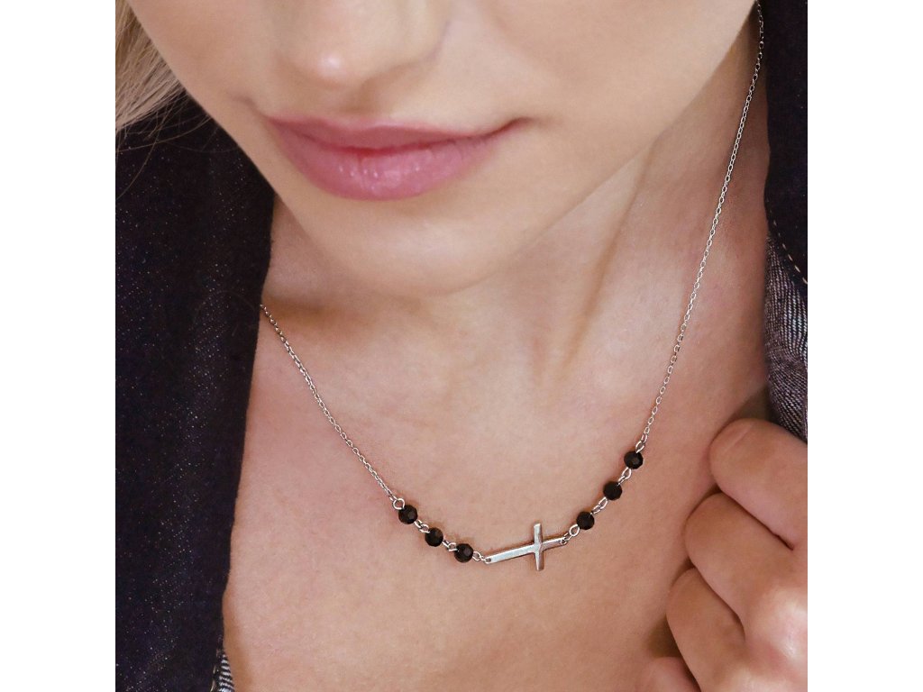 Dokonalá súhra striebra a čiernej - tento jedinečný náhrdelník spája klasický symbol krížika s moderným dizajnom lesklých čiernych korálikov. Výsledkom je šperk, ktorý vás očarí svojou mystickou eleganciou a nadčasovosťou. Kvalitné striebro rýdzosti 925/1000 je ošetrené vrstvou ródia, ktorá zaistí, že váš šperk bude stále žiariť ako v deň, keď ste si ho zaobstarali. Vďaka spracovaniu bez niklu si tento kúsok môžu dopriať aj dámy s citlivou pokožkou.