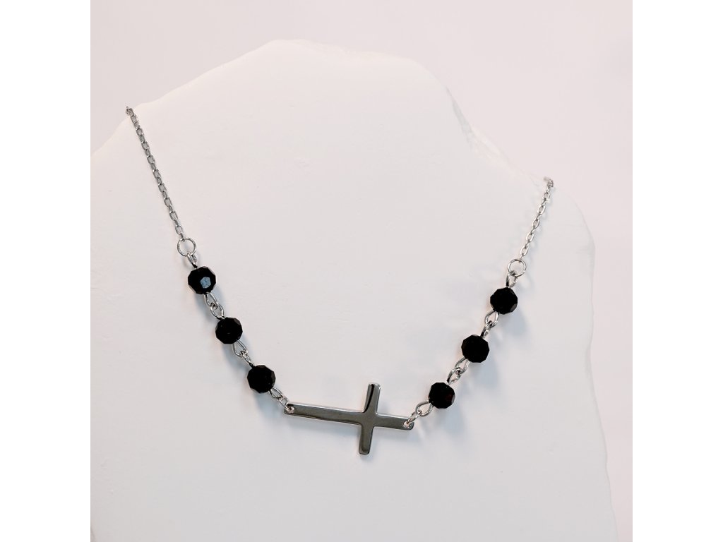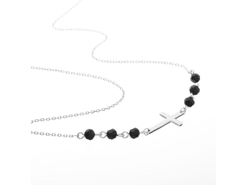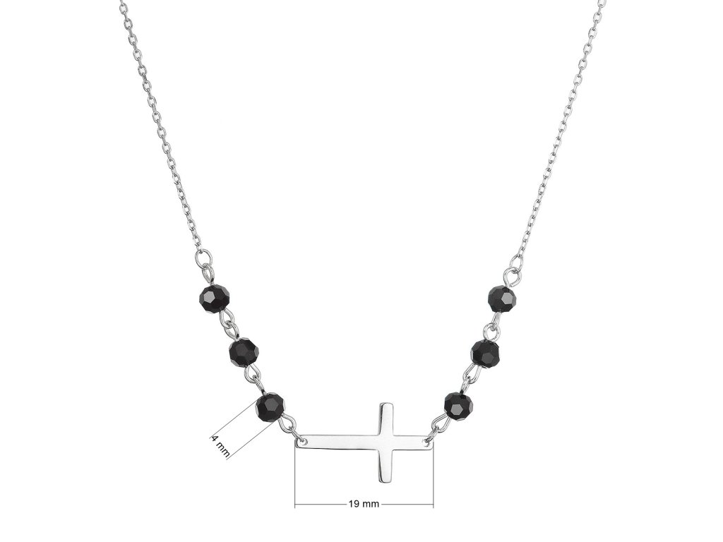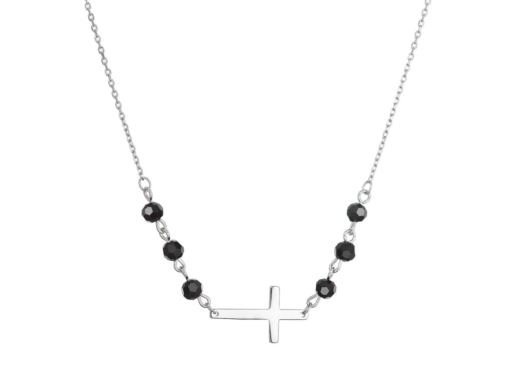 Strieborný náhrdelník krížik s čiernymi korálkami 12119.3