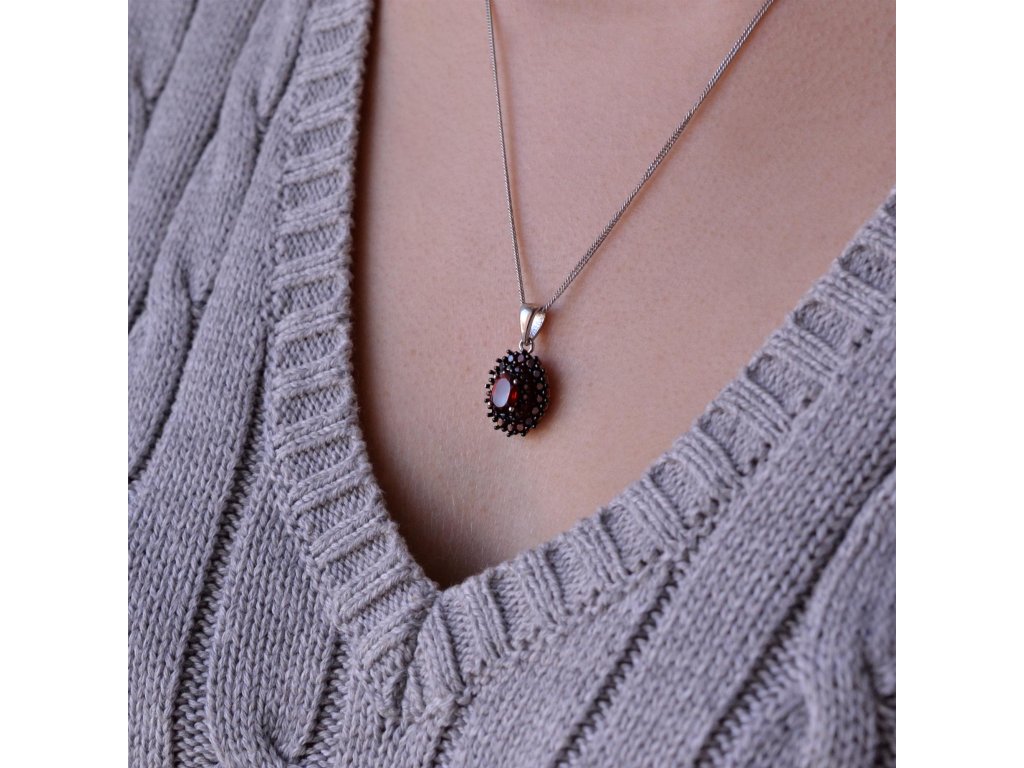 Strieborný náhrdelník luxusný s granátom 12091.3