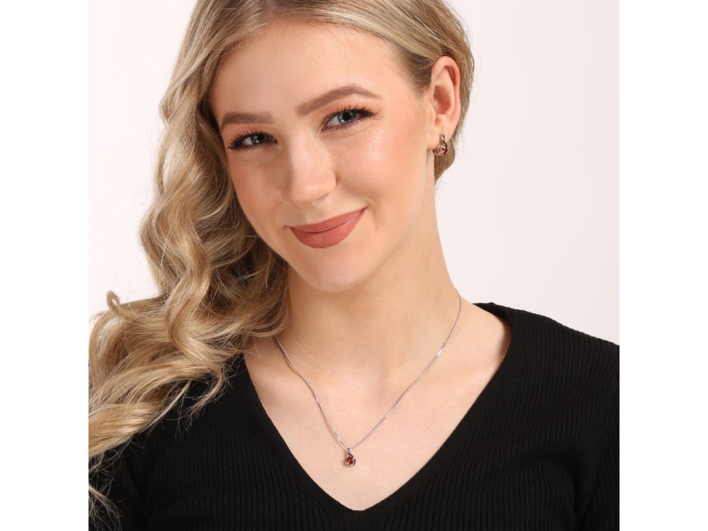 Náhrdelník 12089.3 je ako slzička, kde dominantou je červený granát s jemne vysadenými malými granátmi .