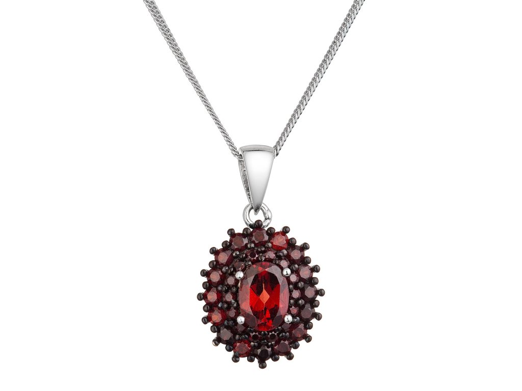 Strieborný náhrdelník luxusný s pravými minerálnymi kameňmi červené 12091.3 garnet