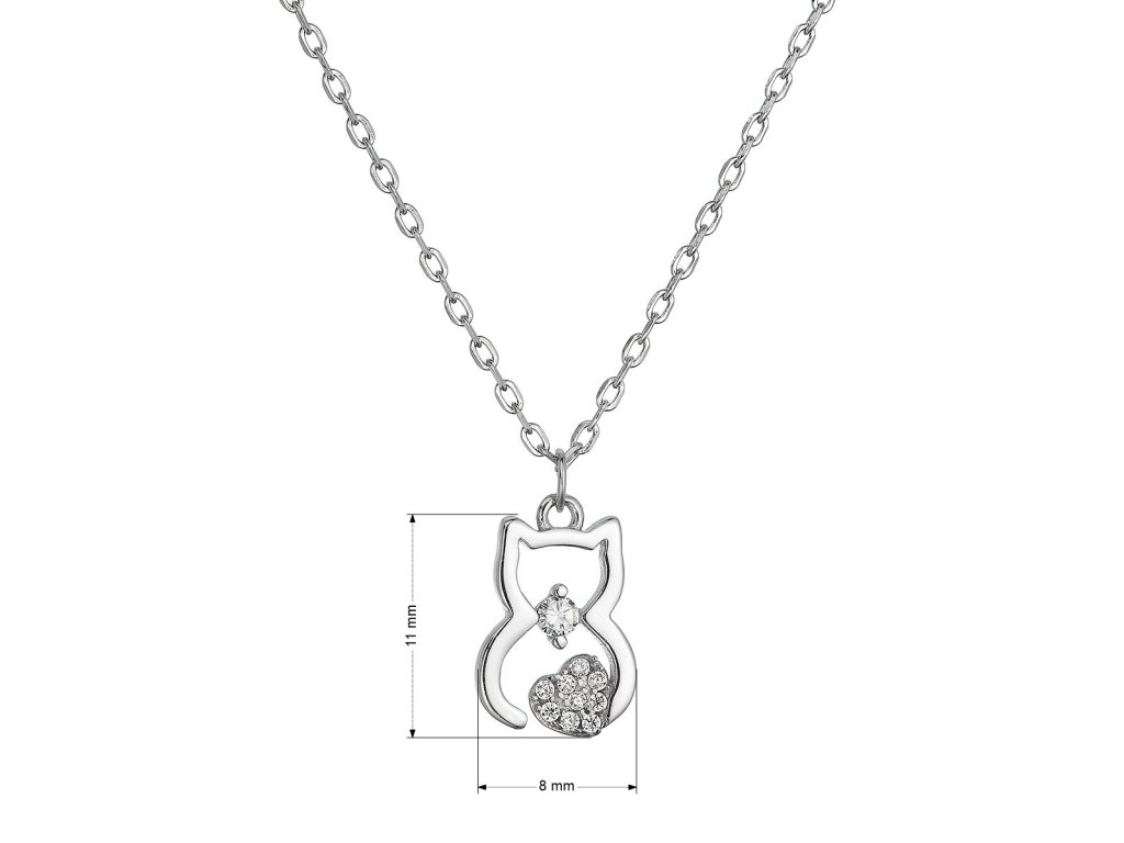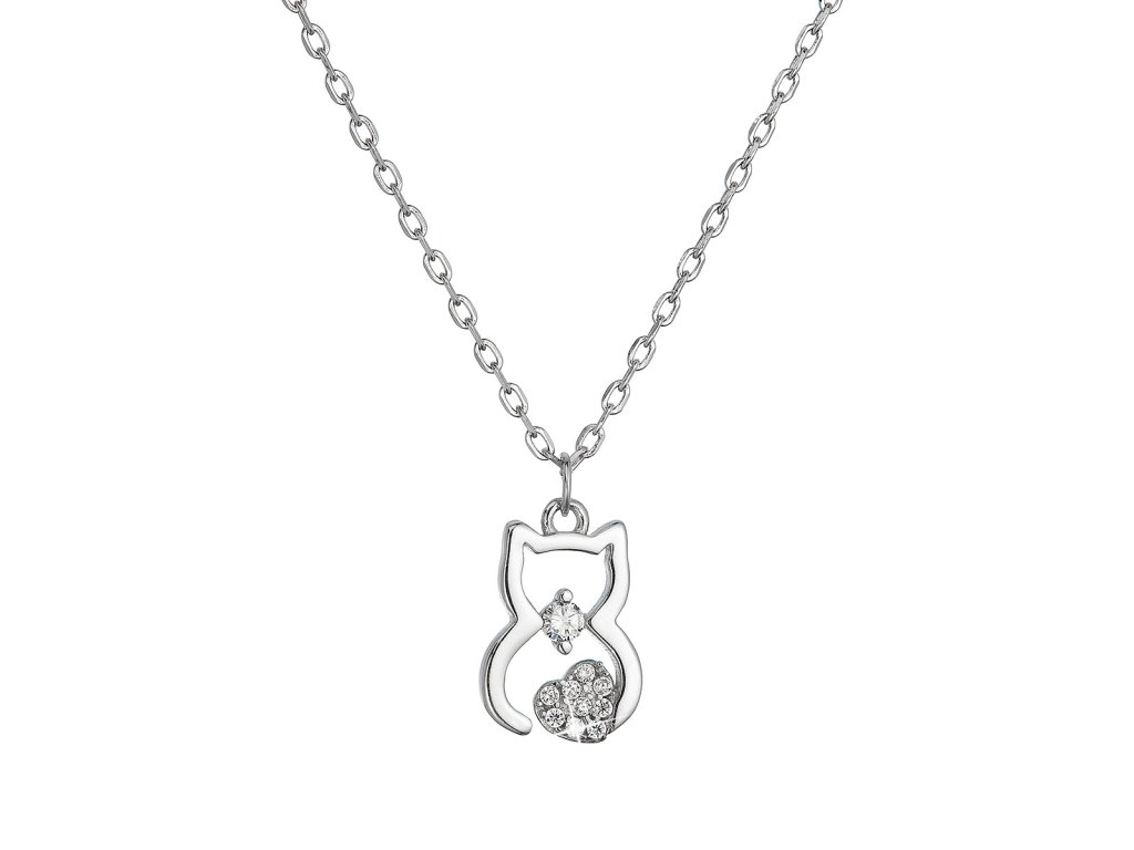 Strieborný náhrdelník mačka so zirkónmi 12113.1