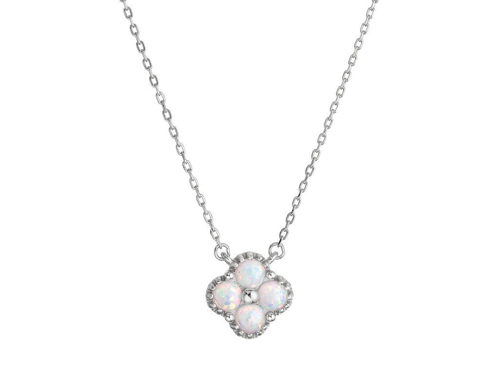 Strieborný náhrdelník opálový štvorlístok 12148.1 biely