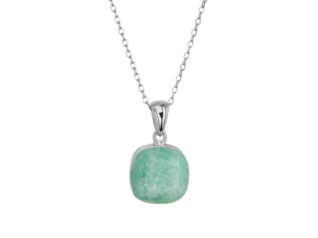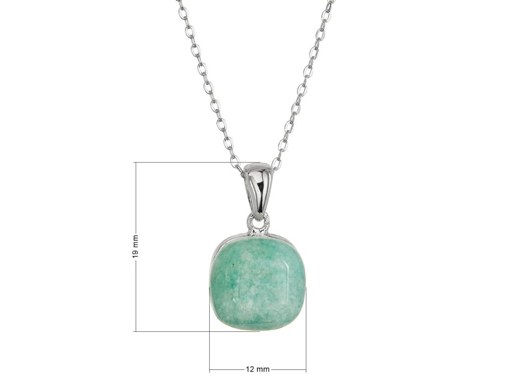 Náhrdelník s príveskom je vyrobený zo striebra rýdzosti 925/1000 s ródiovou povrchovou úpravou, ktorá dodáva šperku čistý a žiarivý lesk. Štvorcový prívesok vyplnený pravým amazonitom v zeleno-modrej farbe odráža sviežosť a pokoj prírodnej krajiny.