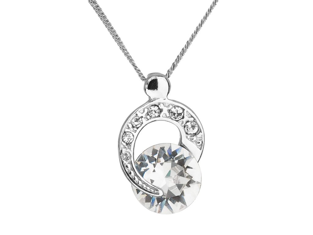 Strieborný náhrdelník s kryštálmi Preciosa biely okrúhly 32048.1 crystal