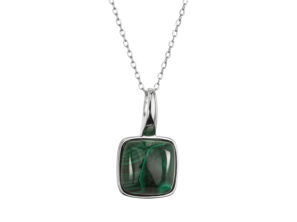 Náhrdelník s príveskom je umeleckým dielom, ktoré spája jemný lesk rhodiovaného striebra rýdzosti 925/1000 s divokou krásou prírodného malachitu. Ródium chráni striebro proti poškriabaniu, sčernaniu i zožltnutiu. Luxusný prívesok v tvare dokonalého štvorca osadený sýto zeleným malachitom s charakteristickým žíhaním vás vtiahne do sveta neskrotnej energie a vnútornej rovnováhy. Geometrický tvar kameňa symbolizuje stabilitu, zatiaľ čo jeho intenzívna zelená farba pripomína hĺbku lesných hlbín.